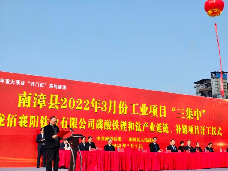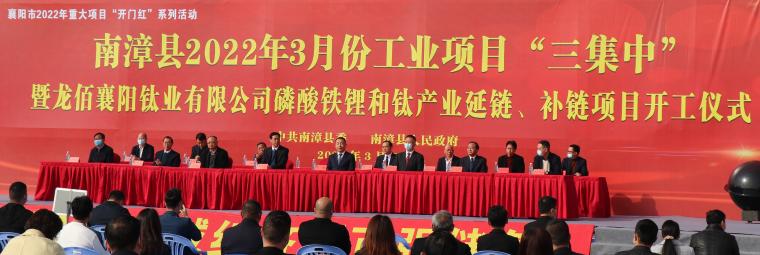 已有人閱讀此文 - -3月7日上午,湖北省南漳縣舉行2022年3月份工業項目“三集中”暨龍佰襄陽鈦業有限公司磷酸鐵鋰和鈦產業延鏈、補鏈項目開工儀式。此次活動集中簽約、開工、投產項目29個,合計投資總額66.89億元,奮力沖刺首季“開門紅”。