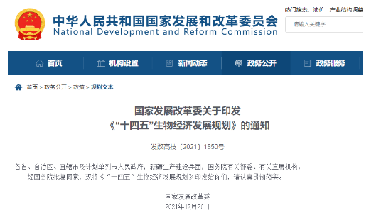 5月10日,國家發改委發布《“十四五”生物經濟發展規劃》,同時這也是我國出臺的首部生物經濟五年規劃。