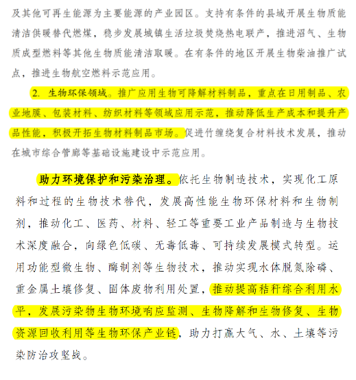 在生物環保領域,《規劃》要求,推廣應用生物可降解材料制品,重點在日用制品、農業地膜、包裝材料、紡織材料等領域應用示范,推動降低生產成本和提升產品性能,積極開拓生物材料制品市場。促進竹纏繞復合材料技術發展,推動在城市綜合管廊等基礎設施建設中示范應用。