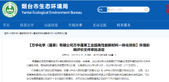 總投資231億!萬華化學計劃在蓬萊建設高性能新材料一體化項目