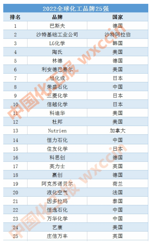 2022全球化工品牌25強出爐!榮盛石化、恒力、恒逸、萬華上榜