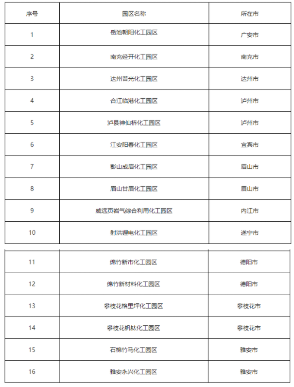 四川省公布第二批化工園區(qū)名單,共有16家!