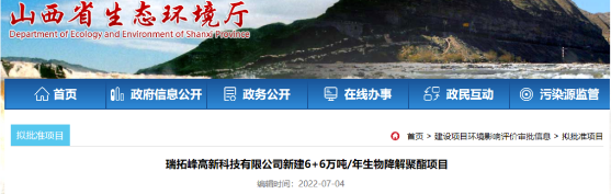 2022年7月4日,山西省生態(tài)環(huán)境廳擬對瑞拓峰高新技術股份有限公司新建6+6萬噸/年生物降解聚酯項目進行環(huán)境影響評價批復。 項目信息 項目名稱:瑞拓峰高新科技有限公司新建6+6萬噸...