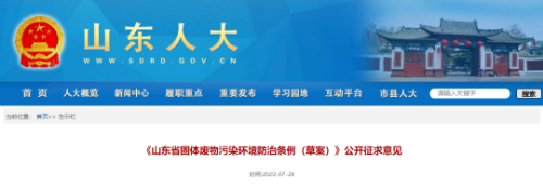 近日,山東省人大常委會法制委員會公布了《山東省固體廢物污染環境防治條例(草案)》全文,征求社會各界意見和建議。公眾評論的截止日期為2022年8月30日。 7月26日,在山東省第...