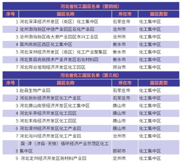 8月7日,河北省工業和信息化廳下發通知,按照《河北省化工園區認定辦法(試行)》(冀政辦字〔2020〕182號)和《化工園區建設標準和認定管理辦法(試行)》(工信部聯原〔2021〕220號)要求,現將認定通過的第四批化工園區名單予以公布。公布第四批化工園區名單。此次公布的園區共計7家,類型均為化工集中區。