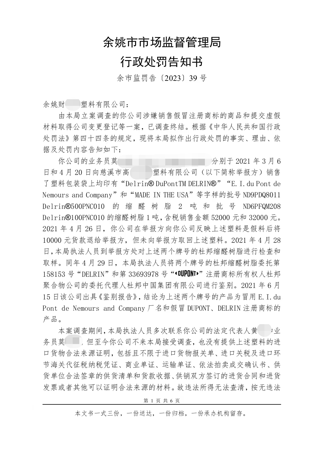 假貨?。?!余姚一塑料公司被重罰40萬!??