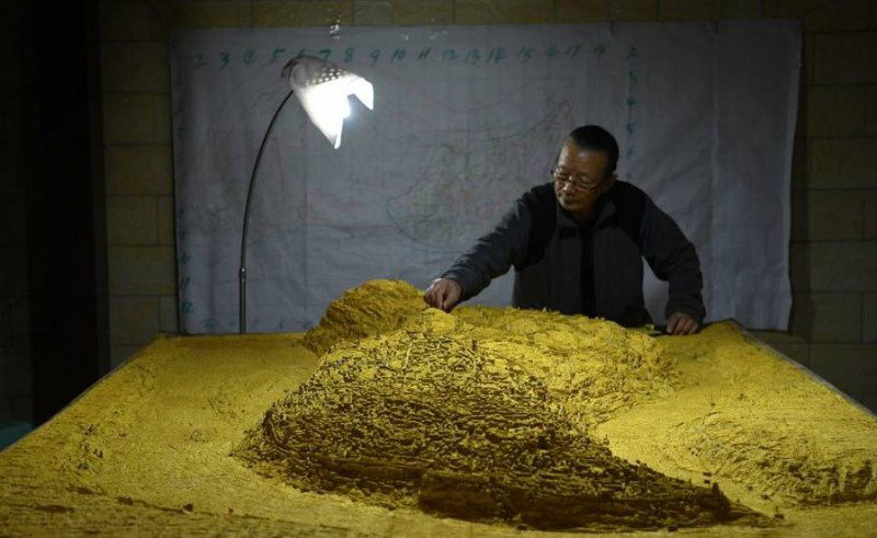17年11月11日,重慶市73歲的張更之老人利用兩米寬3米長的泡沫塑料雕刻了一座老重慶城。張更之說,是2件事使他出芽了制做一個老重慶城沙盤的想法。一件是他見到一部紀實片詳細介紹德國漢堡市的實體模型歷史博物館;另一件是參觀考察了老重慶十八梯國際電影節。老重慶城沙盤上標明了133條街道社區、30處港口、32處名舍名址。圖為老人用雕刻工具在沙盤上開展裝飾。