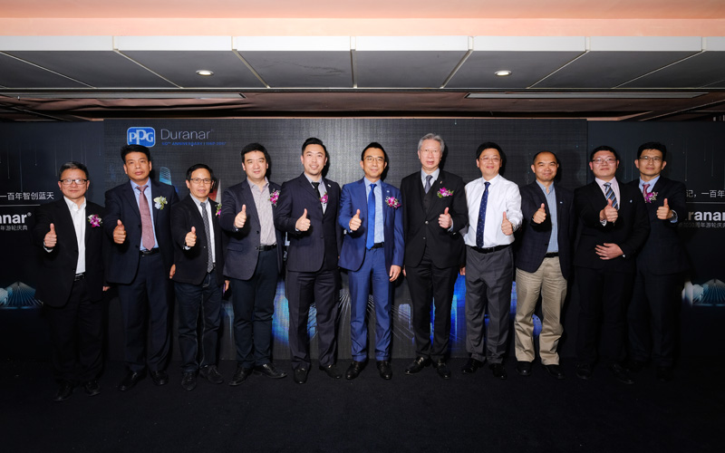 PPG工業(yè)涂料精英團(tuán)隊(duì)與顧客及經(jīng)銷商意味著在Duranar品牌誕生50周年紀(jì)念慶賀主題活動(dòng)上合照