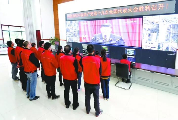 從行政機關到基層,從加工廠到生產車間、到隊組,吉林石化企業在確保安全性平穩生產制造的前提條件下,機構集中化接聽收看黨的十九大揭幕隆重開幕。圖為吉林石化有機化學廠收看當場。