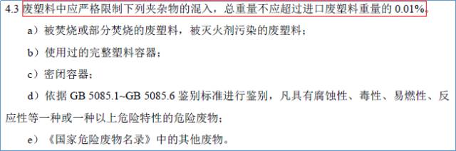 調節了危廢的操縱規定,由以前的嚴禁帶有危廢進口,到限定危廢的成分不超過進口廢舊塑料的0.01%。