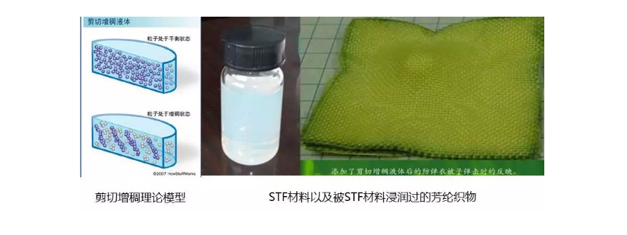 液體防彈原材料(TBS)的主要成分是一種特別制作“裁切增稠液體(STF)”,這類液體一般由分散化粒子SiO2和有機化合物助懸劑氮丙啶酒精、聚乙二醇、局丙二醇或是礦物質(zhì)機油等一種或幾類的化合物構(gòu)成。“裁切增稠液”中隨意飄浮著粒子,當(dāng)液體由于強烈沖擊性而被擾亂時,在其中的獨特粒子互相撞擊,產(chǎn)生了對這類攪拌的抵抗能力。