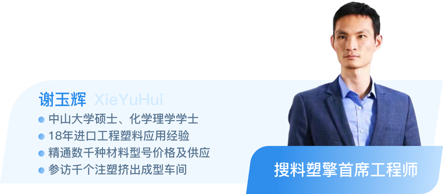 如果您在使用搜料平臺中遇到任何問題,或在產品設計、配方設計、材料報價、材料采購、試料打樣、開模試模、精益生產、故障排除、配色噴涂、 外發代工、庫存處理、機器買賣維修、產品銷售、企業管理、員工培訓等過程遇到問題, 請第一時間告訴我們,搜料特邀塑料產業鏈多位專家為你解答,并提供一對一線上線下專業服務。 有困難,上搜料!共同進步、相互成就、讓改變當場發生!